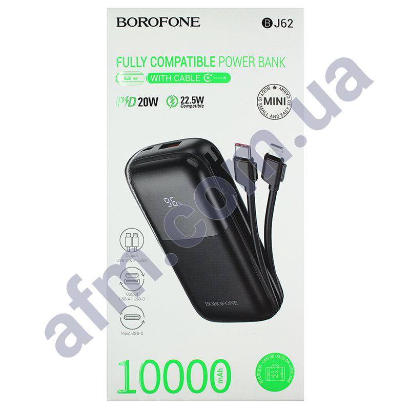 Аксесуари до мобільних телефонів Акумулятори Power Bank Зовнішні акумулятори (Power Bank) Зовнішній акумулятор (Power Bank) Borofone BJ62 22.5W+PD20W + кабели C+iP (10000 mAh) чорний Код: 89814680 607.33 грн. Доставка ×